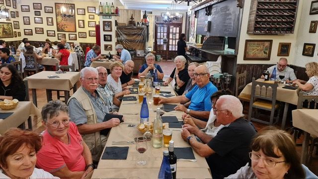 De bon matin nous avons quitté la Cave sous le soleil mais avec une température un peu basse pour parcourir les 63 km qui nous séparent de Pampelune. On perçoit déjà la proximité des Pyrénées avec des routes qui grimpent et le sentiment que c’est la fin du circuit. Stationnement sur le parking gratuit à proximité de la ville pour la majorité. Nous avons décidé d’un restaurant le midi plutôt que des tapas le soir. Après avoir déambulé dans les rues animées de la vieille ville et photographié la célèbre mairie où sont lancées des fêtes de la saint Fermin, nous sommes partis à la recherche d’un restaurant. Le choix s’est fait au très « grand Pif » qui peut apporter des surprises. Nous avons fini notre périple gastronomique en apothéose : un restaurant super au niveau des quantités, de la présentation, de la variété, de l’amabilité et des serveurs. Tout était bien. Moment de forte émotion pour remercier les organisateurs très émus. Ils ont tout donné et à ce moment là les nerfs sont tombés. Merci encore à l’équipe homogène qui a permis de réaliser ce circuit très espagnol avec un Tonio à l’aise dans son pays qui a été un très bon guide.