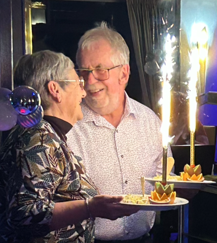 Le soir, à bord de notre « Vaisseau » un repas de gala est servi : grâce à une gentille indiscrétion, nous en profitons pour fêter Chantal et Gérard qui célèbre ce soir, leurs noces d’or !