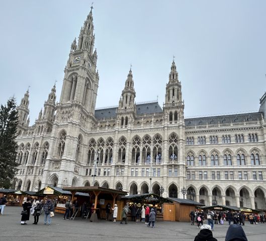 VIENNE d’abord ! Durant le tour panoramique nous empruntons « le Ring » le plus célèbre des boulevards Viennois. Créé il y a plus de 150 ans il incarne la beauté des monuments bâtis entre 1830 et 1890 : l’opéra, le musée des Beaux Arts, des palais et des édifices religieux. N’oublions pas que Vienne est surnommée : la ville aux 150 musées ! C’est dire la diversité des constructions qui offrent un écrin enchanté aux multiples Marchés de Noël dressés à travers toute la capitale Autrichienne.