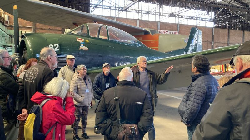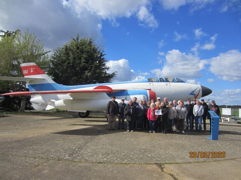 Avant de "Déguster visuellement" ce musée, une photo de groupe devant un chasseur/bombardier Vautour qui marque l’entrée du site SAFRAN.