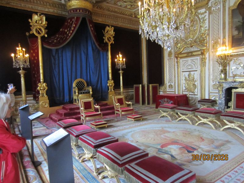 Initialement prévu pour 8 personnes, il a regroupé 18 personnes. Il faut dire que l’offre était intéressante. Grâce a un bon de visite, donné par le camping, notre visite nous a couté 6,50 € au lieu de 17. Ce fut un régal pour les yeux dans ce château le plus meublé de France. Hormis la partie consacrée à Napoléon, la présence de la royauté est expliquée dans chacune des pièces. La plus belle des pièces est la salle du trône de louis XIII.