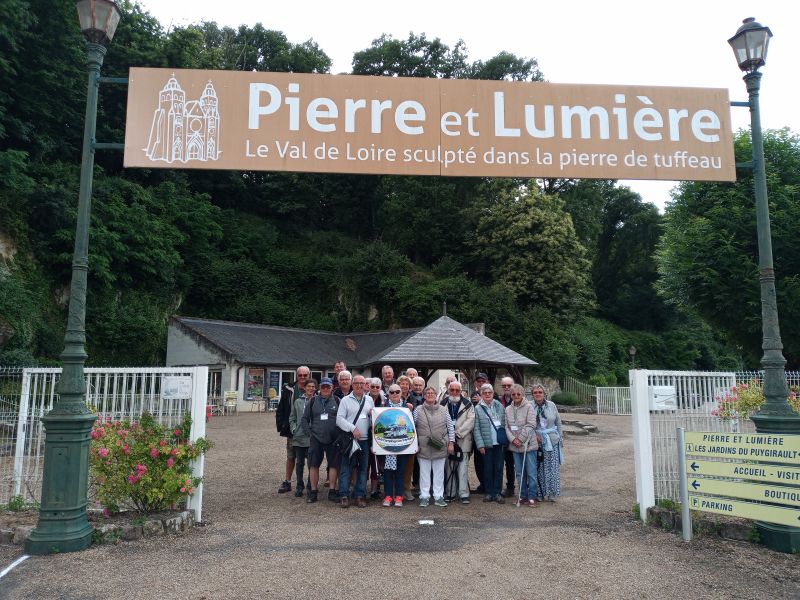 Saint Nicolas de Bourgueuil le Gros Caillou nous avons été reçu par la 3ème génération de viticulteur avec une visite spectaculaire dans une cave qui a été crée par l’extraction du tuffeau pour la construction des châteaux ; utilisée d’abord pour la culture des champignons de Paris et maintenant le vin. Nous avons eu la surprise dans l’immensité de la cave souterraine et avec une dégustation de millésime accompagné d’un fromage de Chèvre de Sainte Maure de Touraine.